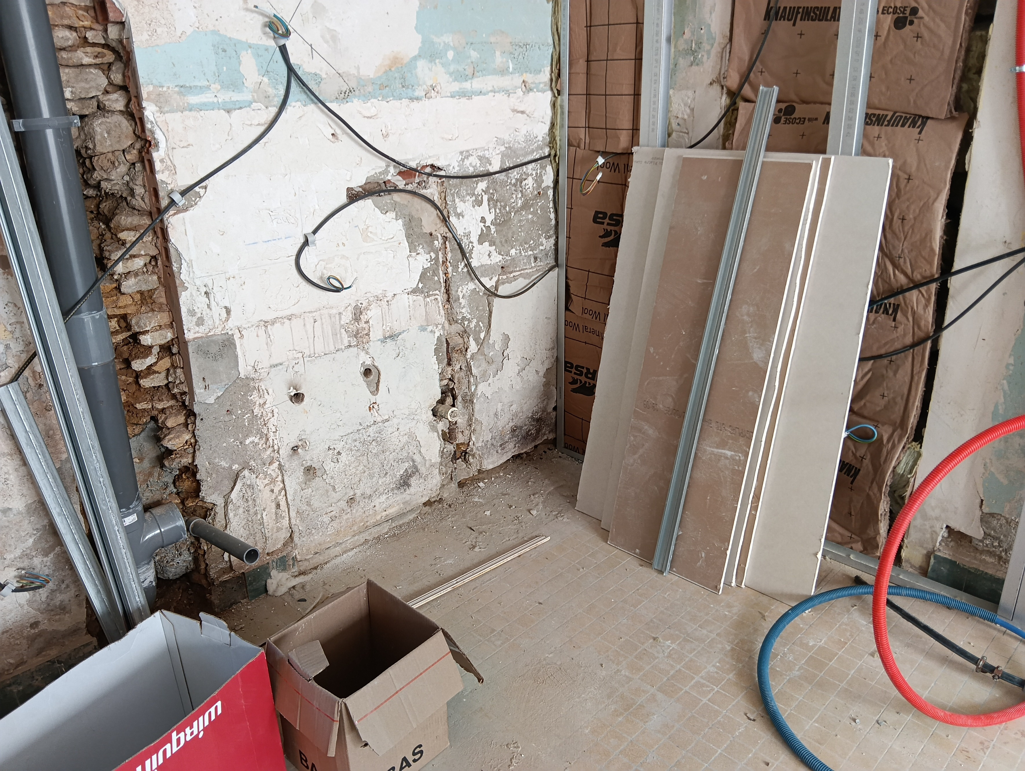 - Suivi de travaux en cours : plâtrerie, électricité, menuiseries extérieures, peinture